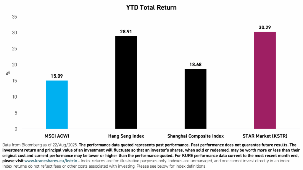 The KraneShares ICBCUBS SSE STAR Market 50 Index UCITS ETF (Ticker: KSTR) is the only European-listed ETF providing access to this exciting IPO market.1 The fund holds the top 50 largest companies based on free-float market capitalization listed on the STAR Market.